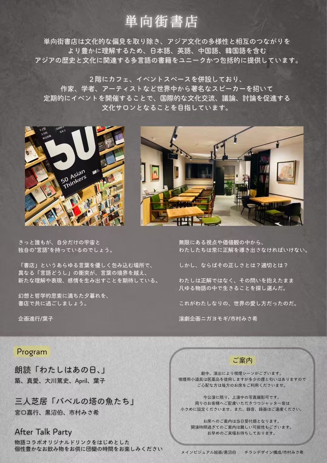 企画:単向街書店、演劇企画ニガモヨギ、April、葉子
