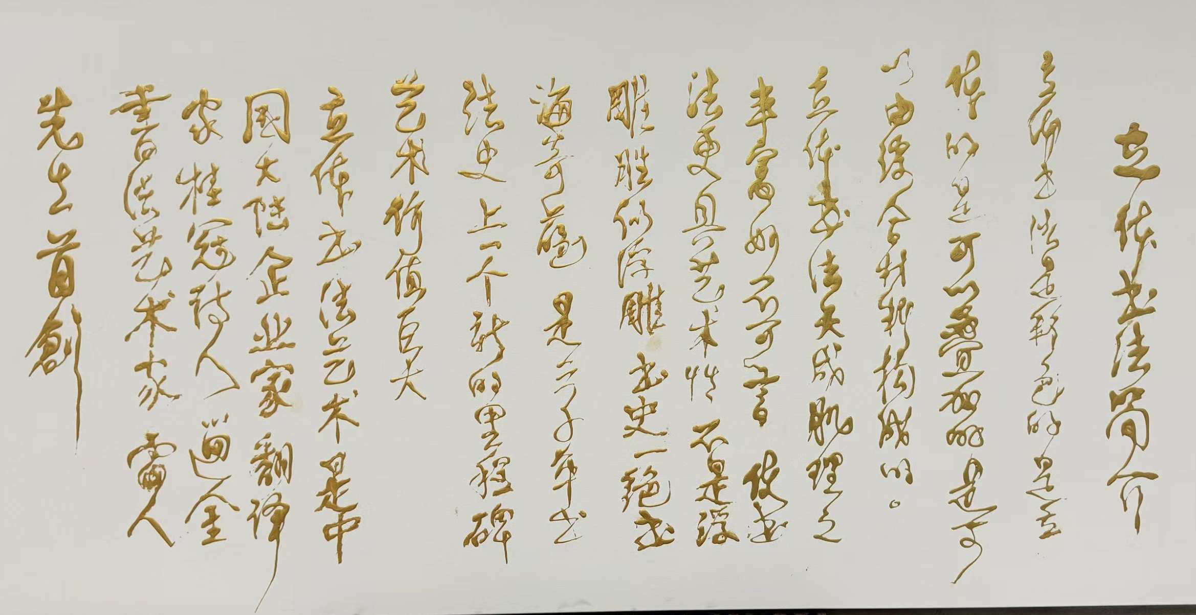 雷人先生以66岁之龄,独辟蹊径,以独特的“遛金”技法,将传统书法艺术推向了一个全新的维度——立体书法,其核心和本质,是开辟了书法历史的新纪元——立体书法时代,这一创举不仅挑战了我们对书法艺术的既有认知,更以其深邃的文化内涵和卓越的艺术表现力,赢得了国内外艺术界的广泛赞誉。