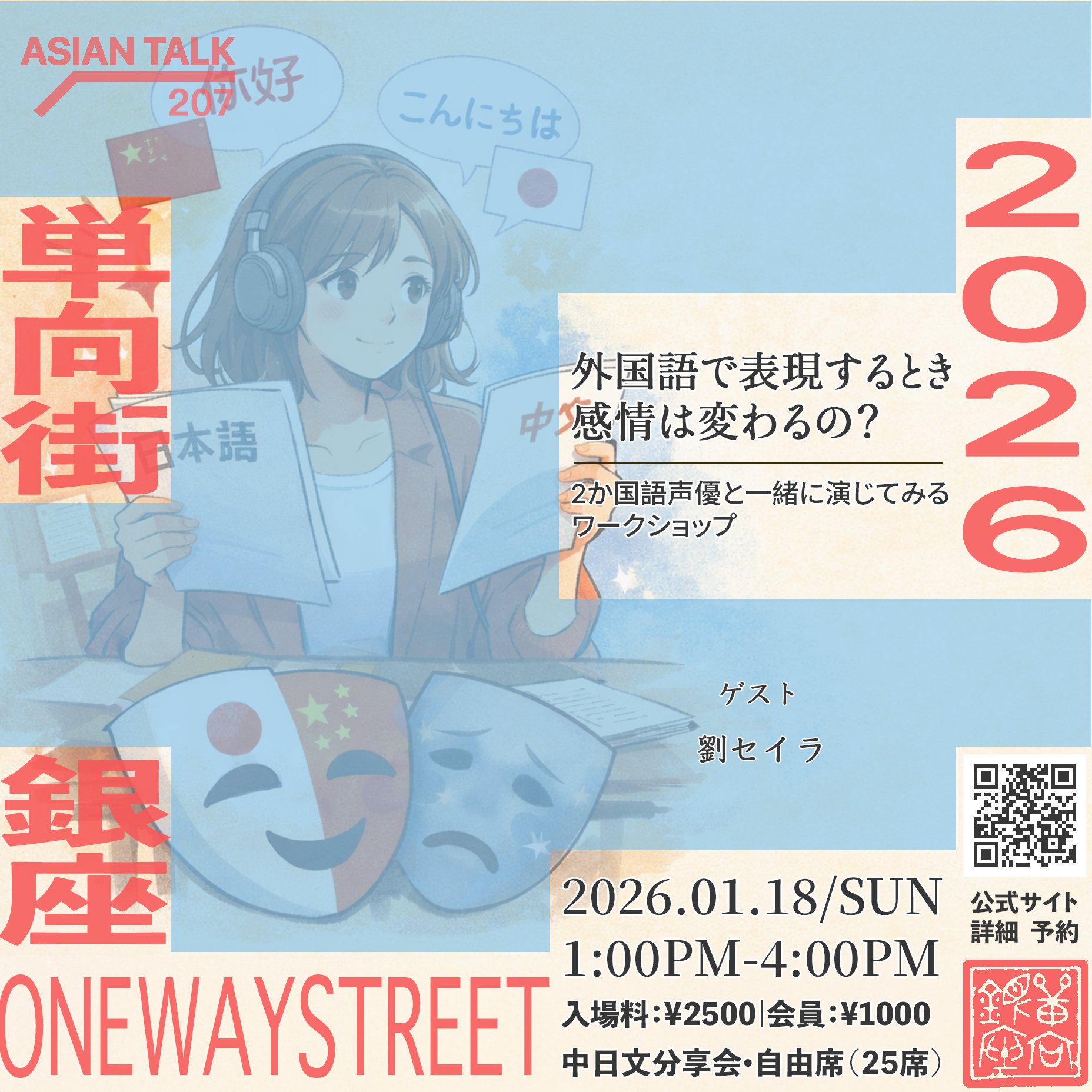 【活动主题】 Asian Talk 207 用外语表达时,情感会改变吗? 跟双语声优一起体验双语表演works… 阅读更多 »Asian Talk 207 用外语表达时,情感会改变吗?跟双语声优一起体验双语表演workshop