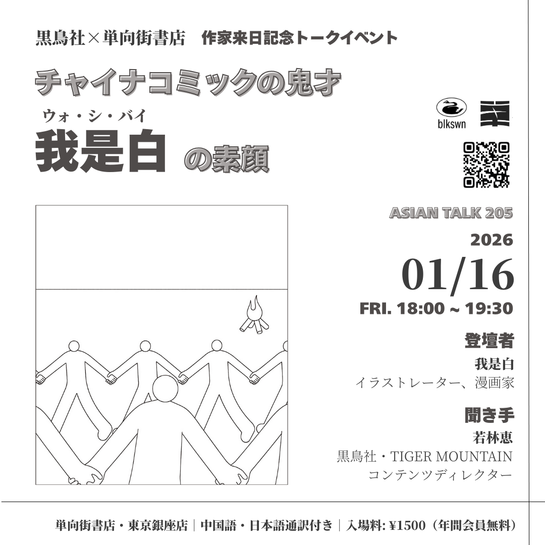 【活动主题】 Asian Talk 205 黒鳥社×単向街書店 中国漫画鬼才“我是白”的素颜 作家来日纪念对谈… 阅读更多 »Asian Talk 205 中国漫画鬼才“我是白”的素颜