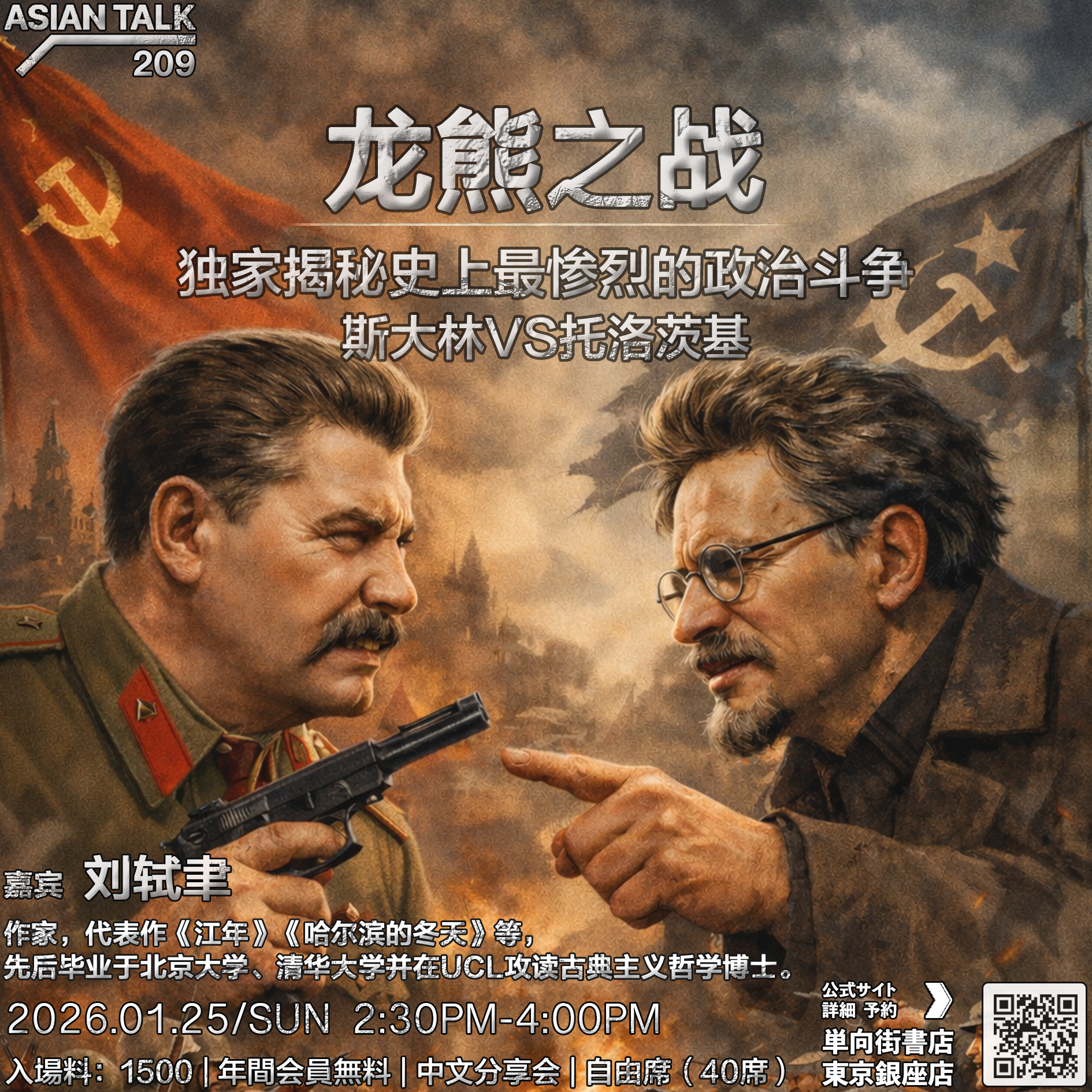 【活动主题】 Asian Talk 209 刘轼聿“启蒙”主题讲座 龙熊之战——独家揭秘史上最惨烈的政治斗争 … 阅读更多 »Asian Talk 209 刘轼聿“启蒙”主题讲座:龙熊之战——独家揭秘史上最惨烈的政治斗争(斯大林VS托洛茨基)