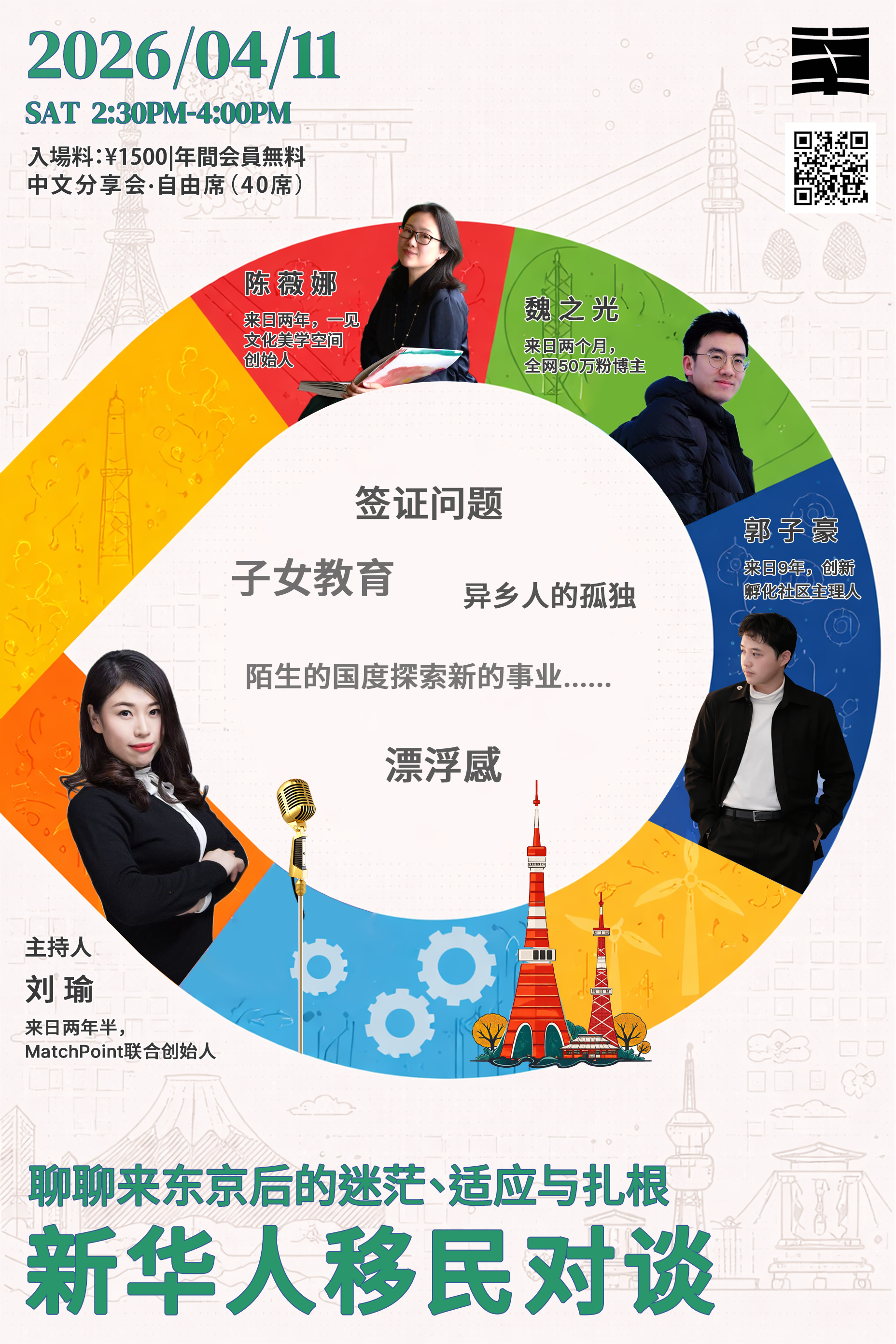 【活动主题】 新华人移民对谈:聊聊来东京后的迷茫、适应与扎根 【活动介绍】 东京平等地需要每一个… 阅读更多 »新华人移民对谈:聊聊来东京后的迷茫、适应与扎根