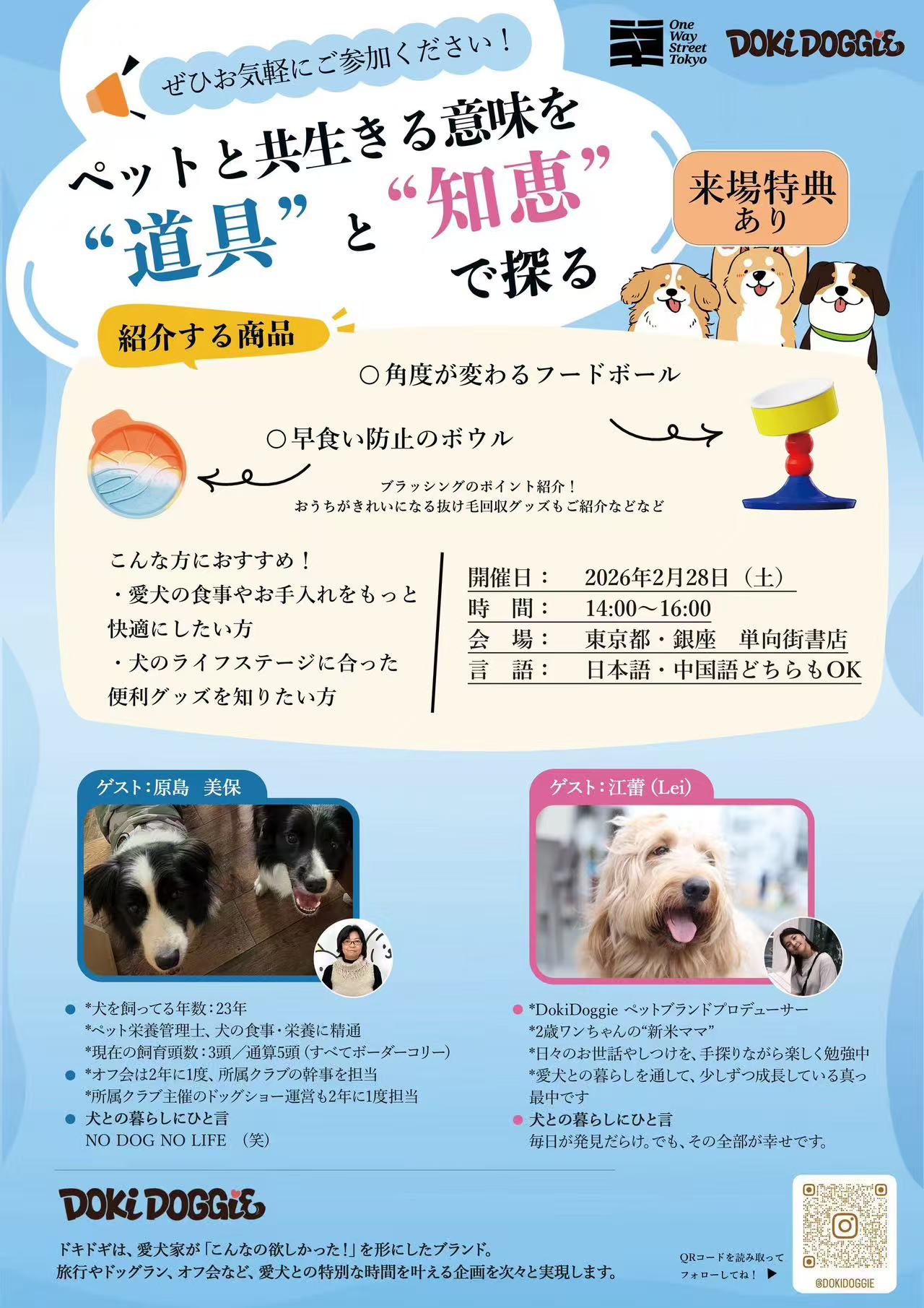 【活动主题】 DOKI DOGGIEドキドギ × 东京单向街… 阅读更多 »【DOKI DOGGIEドキドギ × 东京单向街】与毛孩子一起生活,你真的选对“道具”了吗?