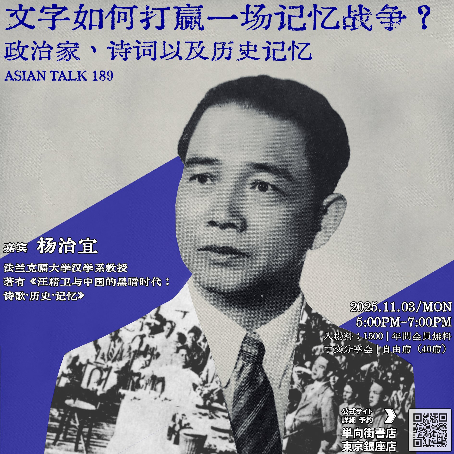 【活动主题】 Asian Talk 189 文字如何打赢一场记忆战争? 政治家、诗词以及历史记忆 … 阅读更多 »Asian Talk 189 文字如何打赢一场记忆战争?——政治家、诗词以及历史记忆