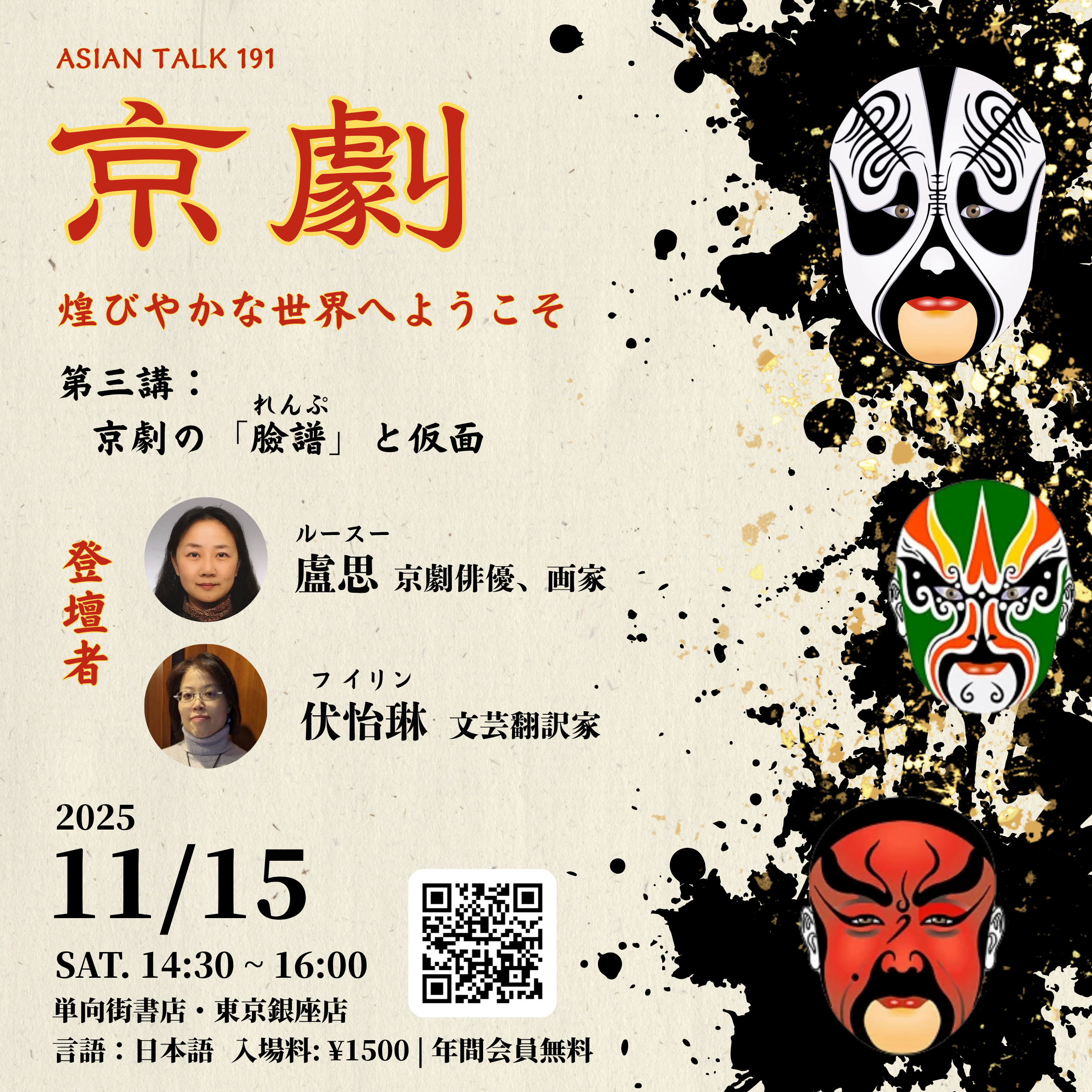 【イベントテーマ】 Asian Talk 191 京劇 煌びやかな世界へようこそ 第三講:京劇の「臉譜」と仮面… 阅读更多 »(日本語) Asian Talk 191 京劇――煌びやかな世界へようこそ 第三講:京劇の「臉譜」と仮面